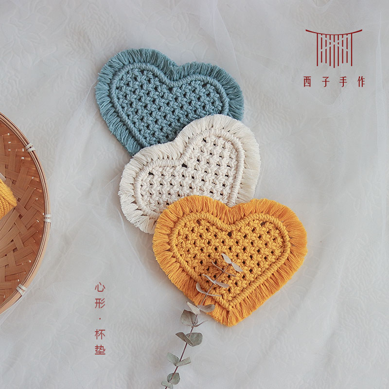 棉绳编织杯垫手工制作餐垫茶几办公桌文艺杯子垫彩色心形桌垫热门设计联盟服务商