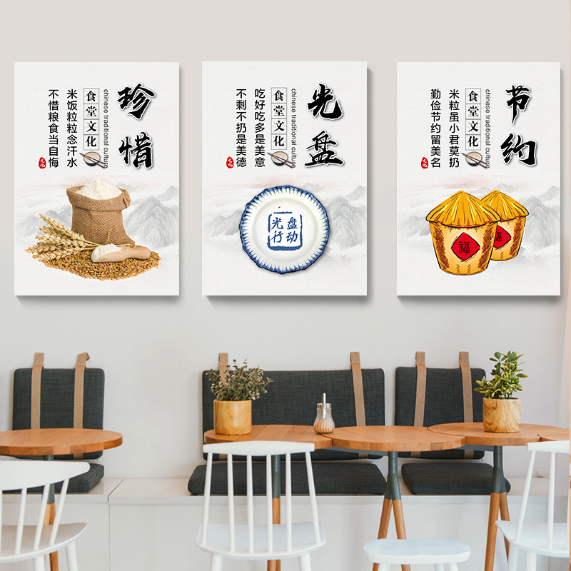 学校食堂文化企业标语节约粮食挂画贴图餐厅饭馆饭店装饰画墙壁画热门设计联盟服务商