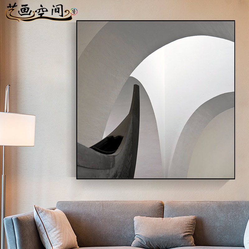 北欧极简建筑挂画抽象黑白客厅装饰画过道墙画酒店办公室书房壁画热门设计联盟服务商