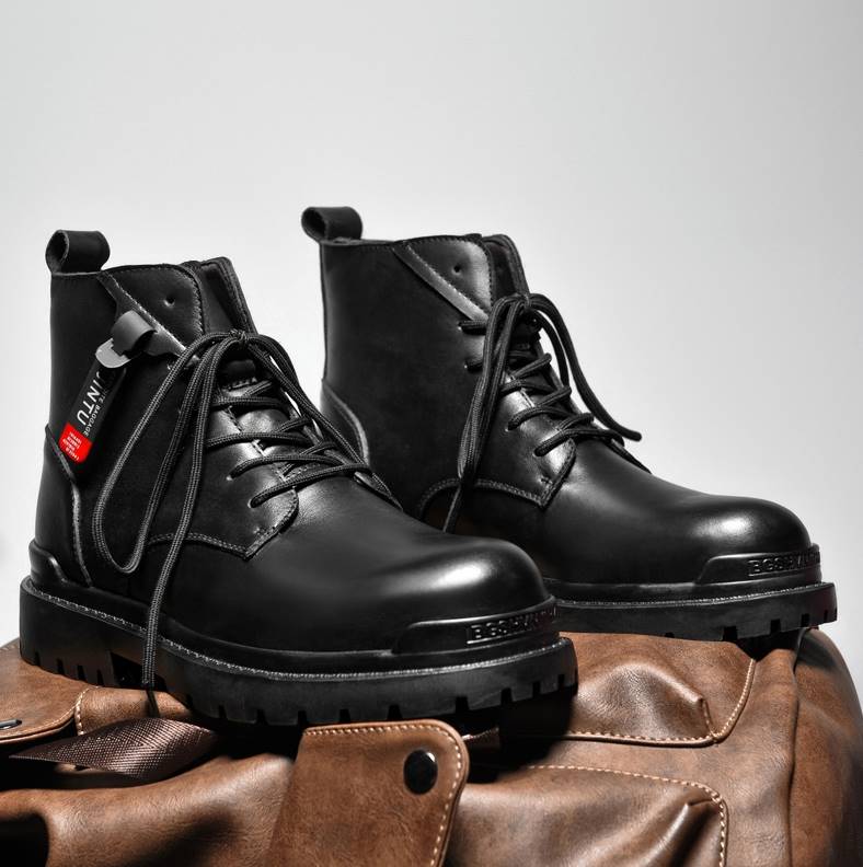 靴子男中帮靴男士工装靴子高帮黑色真皮男鞋2021年秋冬季新款热门设计联盟服务商