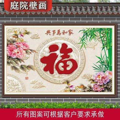 庙宇壁饰定制迎门墙装饰画庭院花鸟祥云艺术院内户外山水画寺庙热门设计联盟服务商