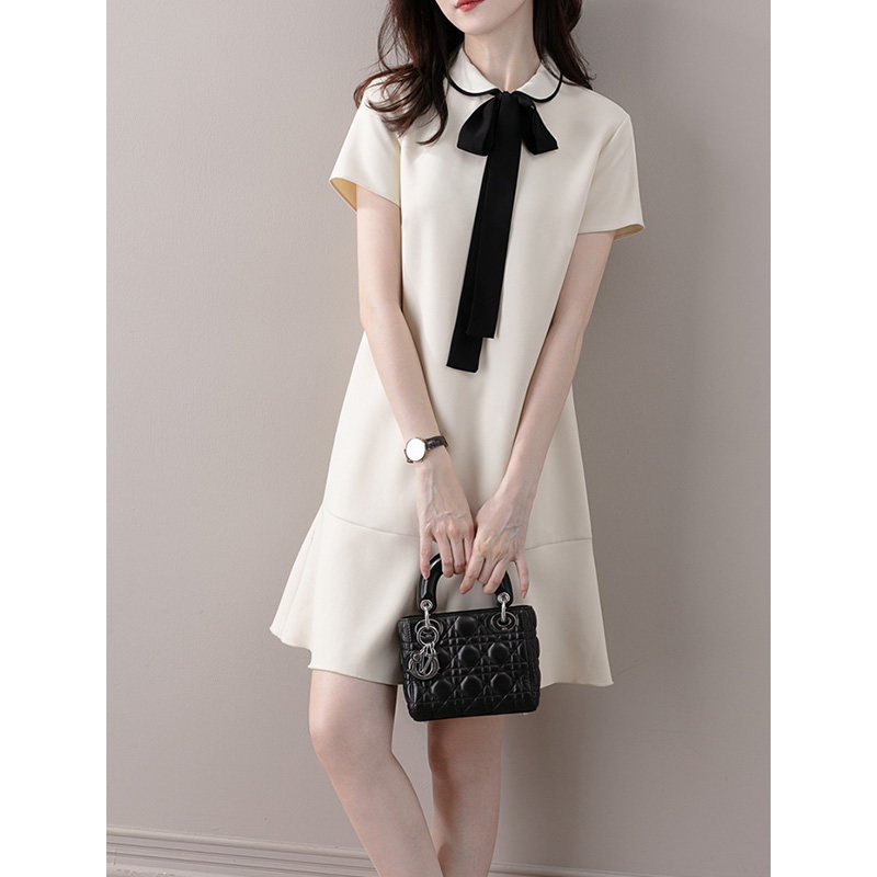 2021年夏装新款法式甜美减龄蝴蝶结领短袖连衣裙显瘦设计感洋气范热门设计联盟服务商