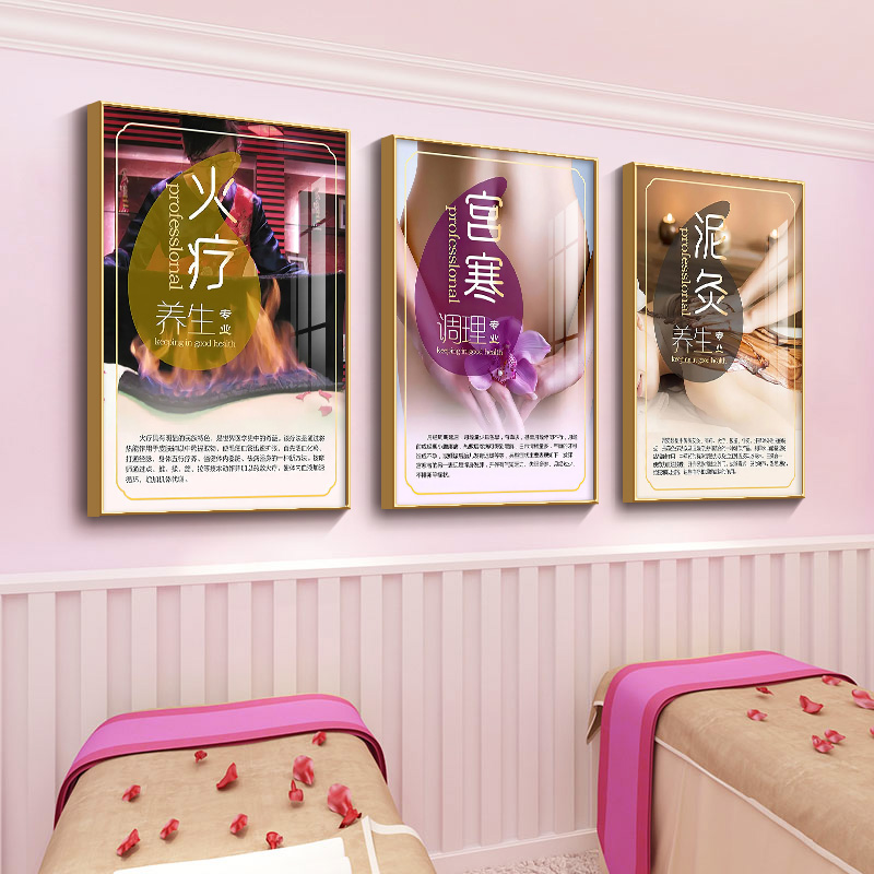 美容院装饰画中医理疗养生馆挂画美体艾灸宣传画spa会所轻奢壁画热门设计联盟服务商