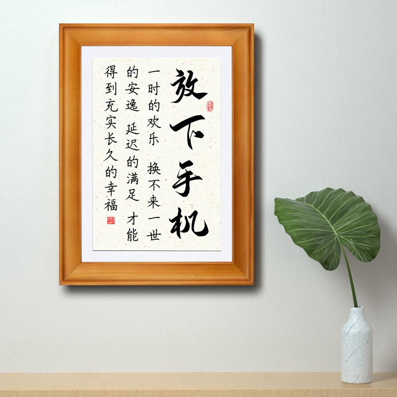 放下手机学生书桌面摆台儿童房自勉励志座右铭格言书法有框挂墙画热门设计联盟服务商