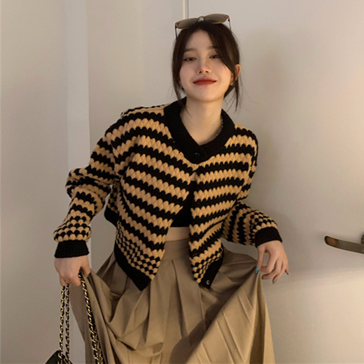 港味短款毛衣外套女2022春季新款设计感外穿别致撞色针织开衫上衣热门设计联盟服务商