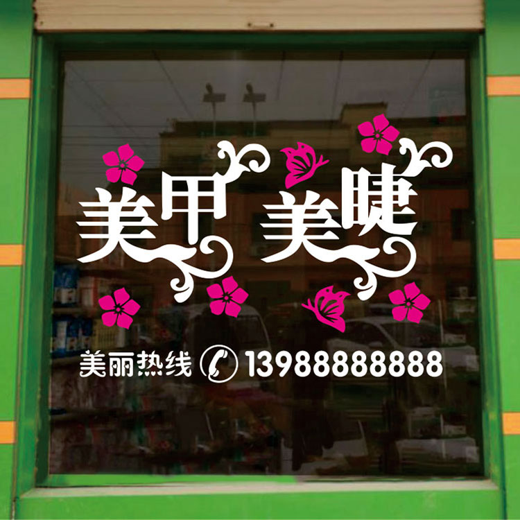 创意美甲美睫美容店橱窗装饰玻璃门贴纸 个性装修布置吧台墙贴画热门设计联盟服务商